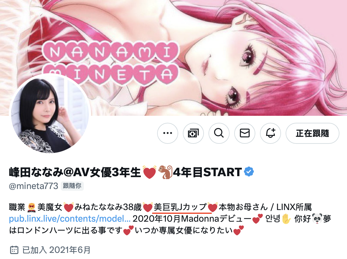 这次宣布引退的是在片商Madonna出道的「峰田ななみ(峰田七海)」,我们一块儿来看看她在X(https://x.com/mineta773)上写了什么: