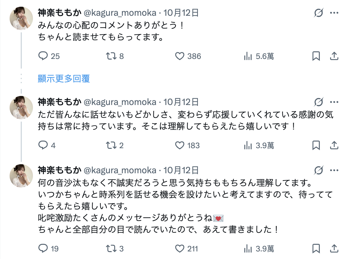 片子停了、社群不太更新⋯神楽ももか(神乐桃果)说明了!
